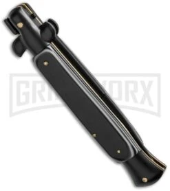 These affordable automatic knives are just like the fancy lever locks without the fancy price tag! The stainless steel bayonet style blade has a flat grind and a black finish. When you press the lever release the automatic action is fast and the lock-up is solid. Item includes a black nylon sheath. Pick up a great alternative to the Italian made Leverletto, at a great price.