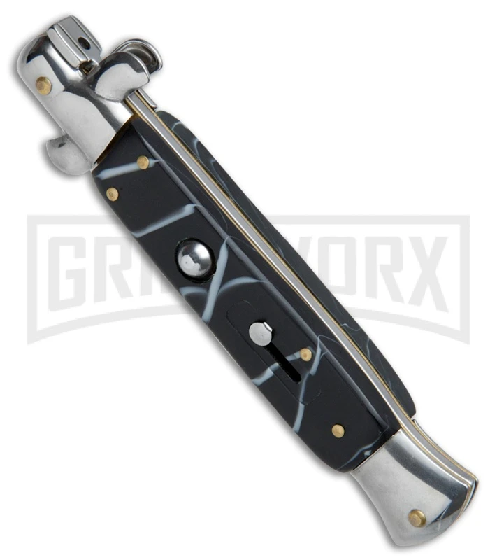 9.5″ Anomaly Stiletto Black Swirl Automatic Knife – Satin Plain