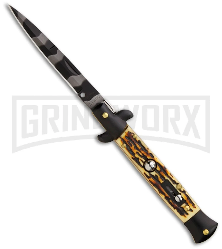 9″ Anomaly Stiletto Sim Stag Horn Automatic Knife – Bayonet