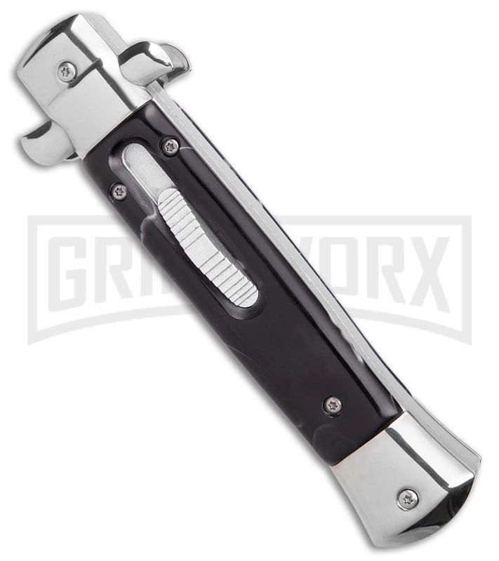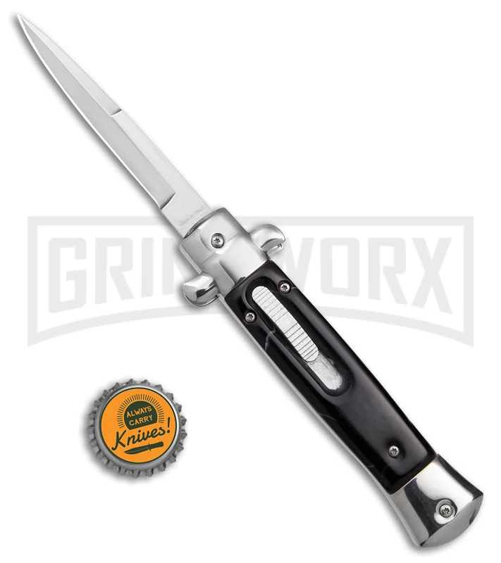 Get the best of both worlds with the Mago 9″ Italian Stiletto OTF automatic. The Mago brilliantly combines the classic style of an Italian stiletto and the tactical speed of an OTF. A front loaded thumb slide fires and retracts the blade with smooth automatic precision. Add a unique design to your collection with the Mago 9″ Italian Stiletto OTF Auto.
