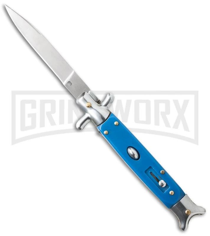 9″ Sharksfin Stiletto Blue Automatic Knife – Satin Plain