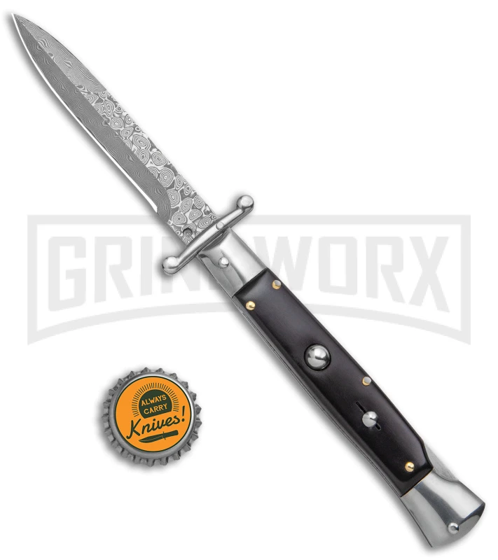 AKC 9″ Italian Stiletto Swinguard Ebony Automatic Knife – Bayonet