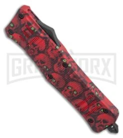 This Minion has a satin finished dagger blade. The aluminum handle is black with a red insert.