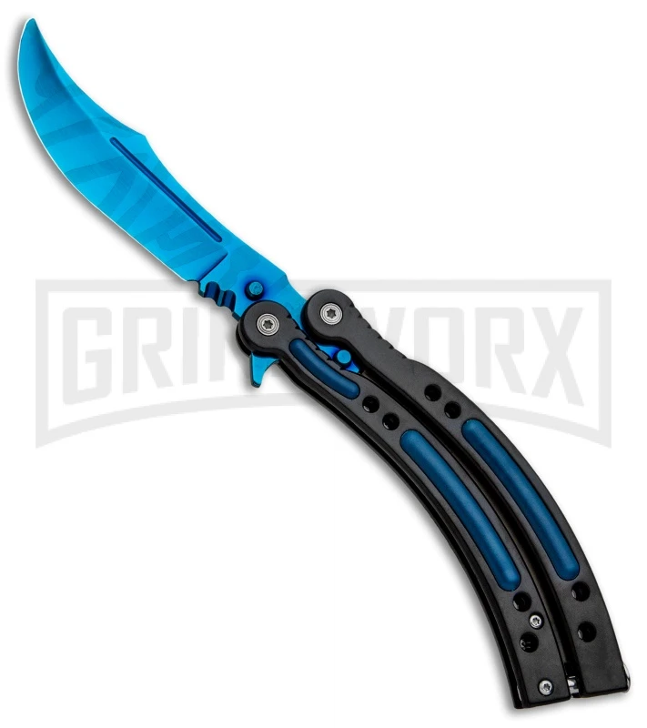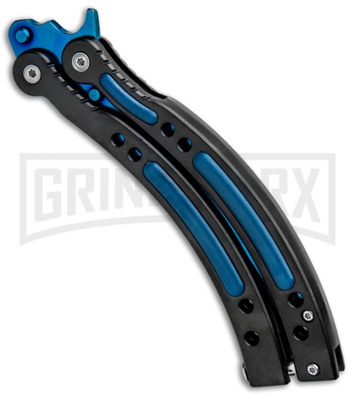 Andux CS Black Balisong Butterfly Knife W/ Blue Inlays – Bowie Blue Plain