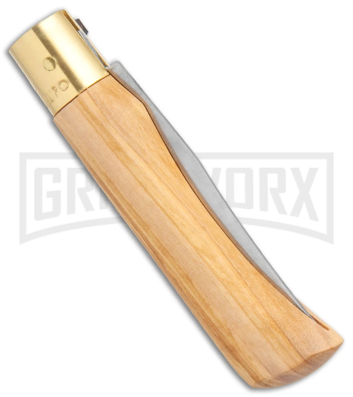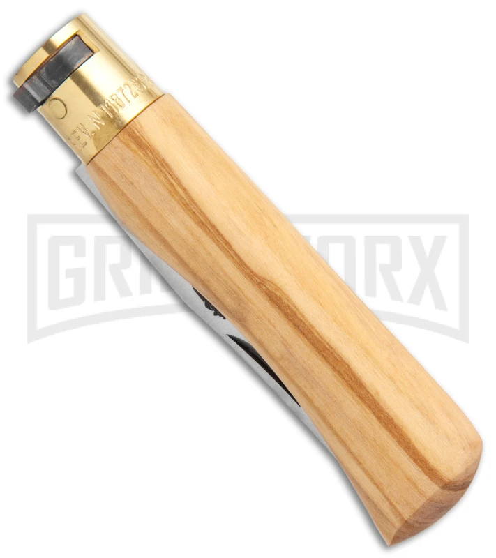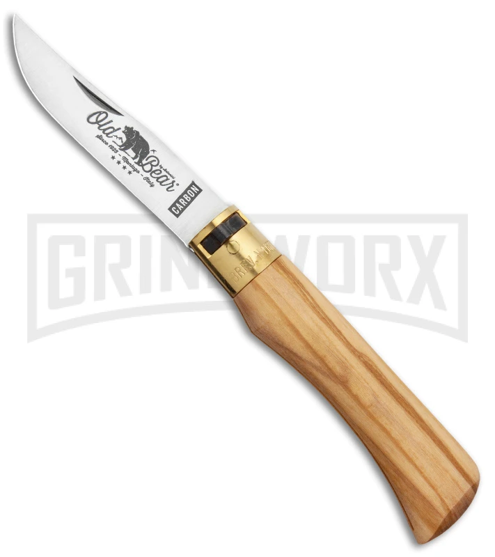 This Antonini Old Bear Classical Carbon Large has a satin carbon steel blade and an Italian olive wood handle.