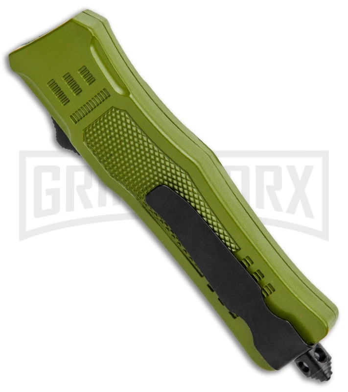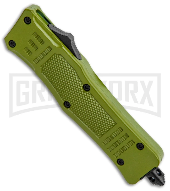 The Atomic Mini Defender OTF offers a rugged build with a scaled down EDC design. It has a stainless steel dagger blade. The handle has a rubberized texture for improved grip with a pocket clip for carrying comfort. Using the side mounted slide button will activate the double-action automatic feature for lightning fast blade deployment. A pommel glass breaker finishes off the tactical design.