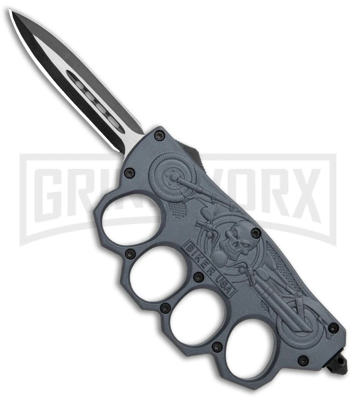 Atomic Gray OTF Automatic Knuckle Knife Biker USA – Dagger Two-Tone