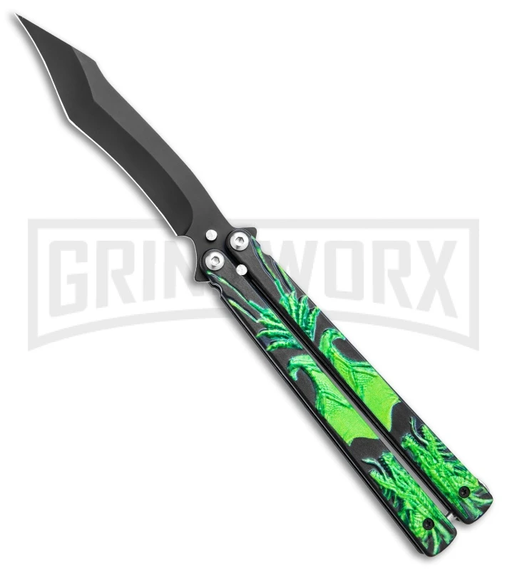 Chalkhill Balisong Black Butterfly Knife – Black/Green Dragon Handles