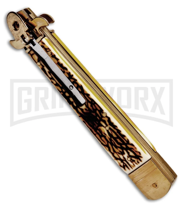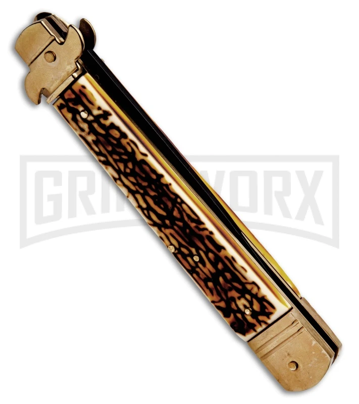 CKM 9.75″ Slimline Stag Leverlock Automatic Knife – Black