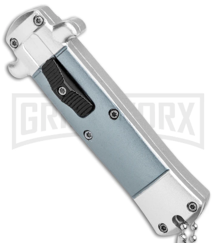 Enzo OTF Gray Automatic Keychain Knife – Satin Spear Point Plain