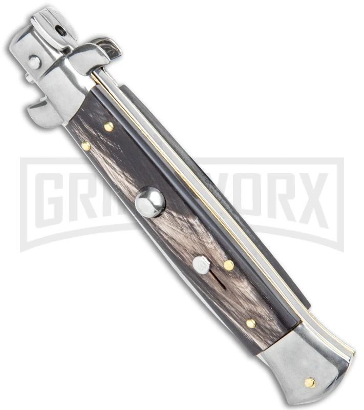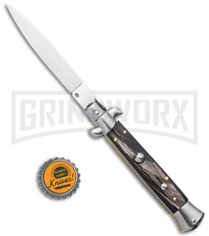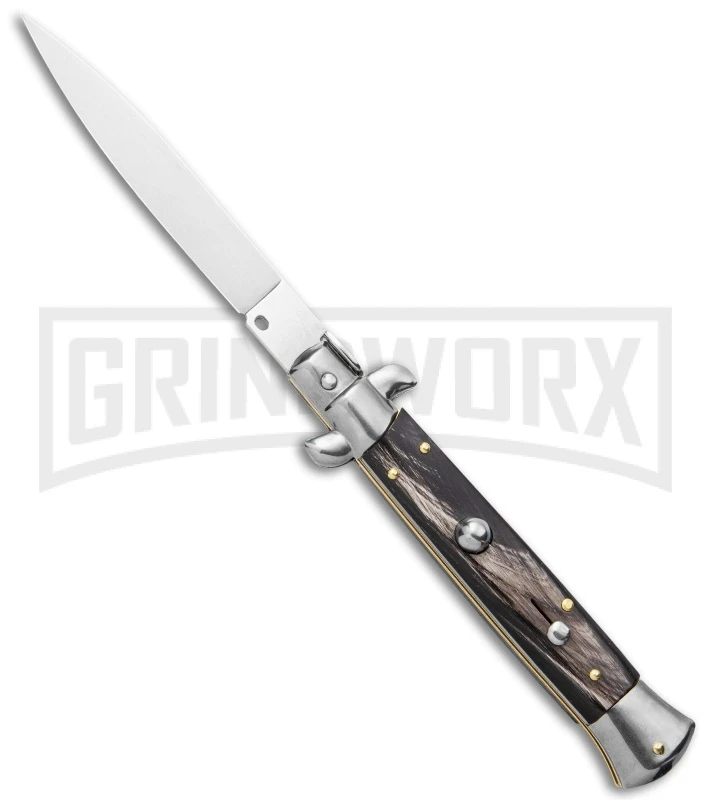 Frank B 9″ Italian Stiletto Dark Horn Automatic Knife – Flat Grind