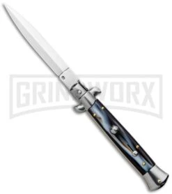 Frank B 9″ Italian Stiletto Sim Dark Horn Automatic Knife – Dagger