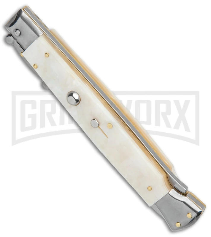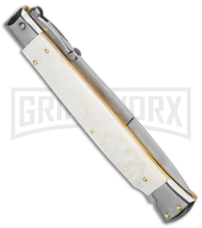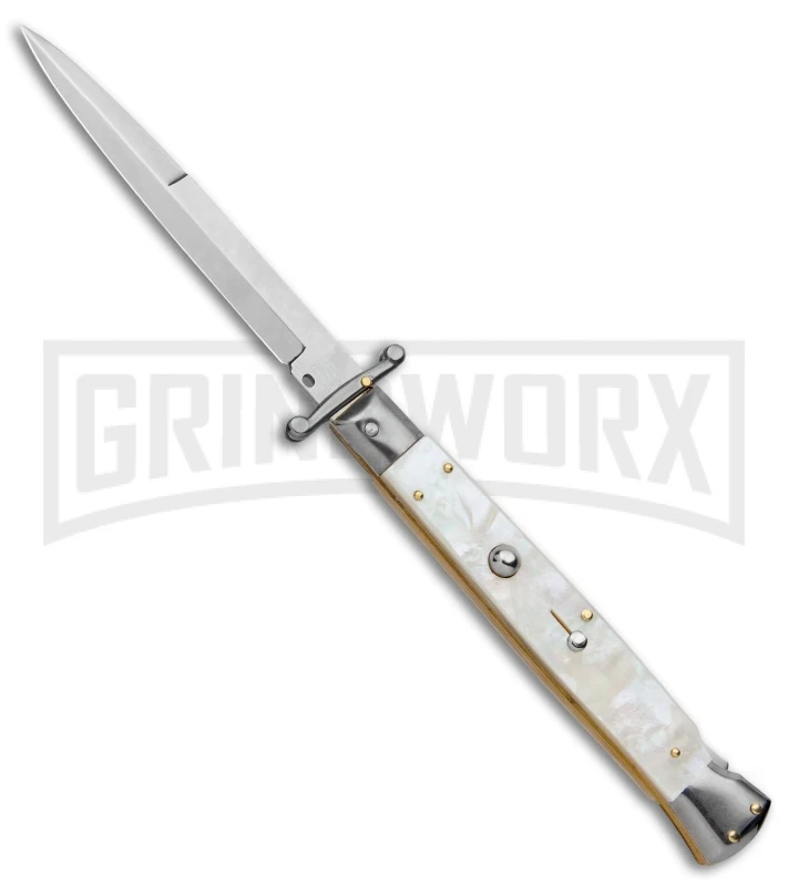 Frank Beltrame 11″ Italian Stiletto Mother Of Pearl Automatic Knife – Bayonet