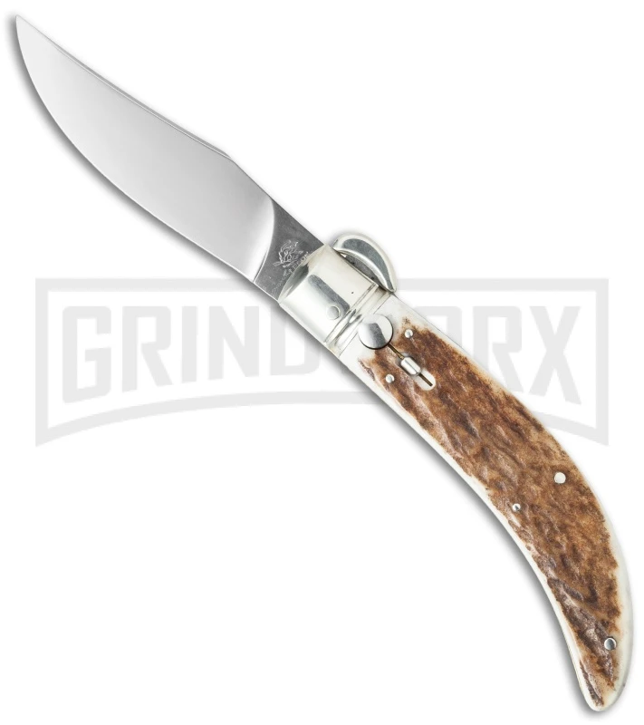 Lepre 9″ Stag Horn Sicilian Picklock Automatic Knife – Satin Plain