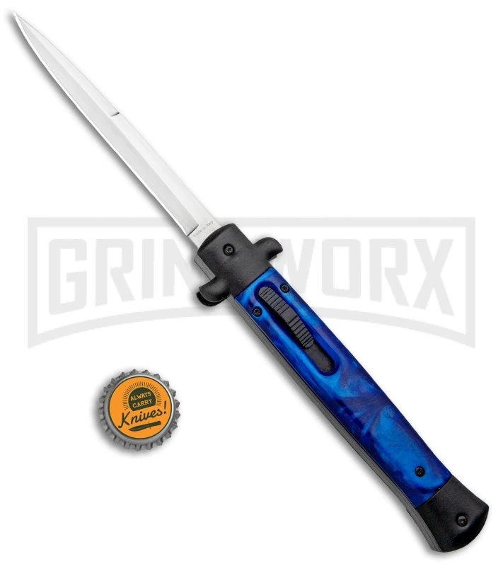 Get the best of both worlds with the Mago 11″ Italian Stiletto OTF automatic. The Mago brilliantly combines the classic style of an Italian stiletto and the tactical speed of an OTF. A front loaded thumb slide fires and retracts the blade with smooth automatic precision. Add a unique design to your collection with the Mago 11″ Italian Stiletto OTF Auto.