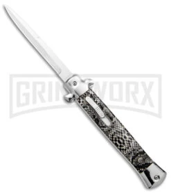 Get the best of both worlds with the Mago 9″ Italian Stiletto OTF automatic. The Mago brilliantly combines the classic style of an Italian stiletto and the tactical speed of an OTF. A front loaded thumb slide fires and retracts the blade with smooth automatic precision. Add a unique design to your collection with the Mago 9″ Italian Stiletto OTF Auto.