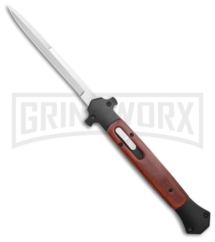This is another awesome stainless steel stiletto OTF inspired by the classic Italian stilettos. It’s a massive 13″ when open and the acrylic handle is a very cool-looking. The blade is made from stainless steel and is fantastic for a collection and everyday carry.