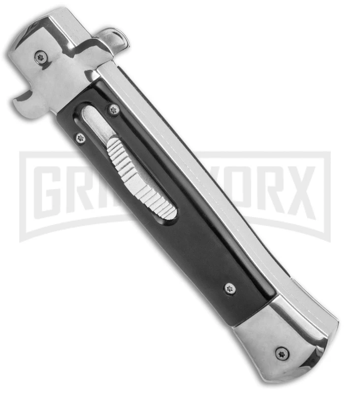 Get the best of both worlds with the Mago 9″ Italian Stiletto OTF automatic. The Mago brilliantly combines the classic style of an Italian stiletto and the tactical speed of an OTF. A front loaded thumb slide fires and retracts the blade with smooth automatic precision. Add a unique design to your collection with the Mago 9″ Italian Stiletto OTF Auto.