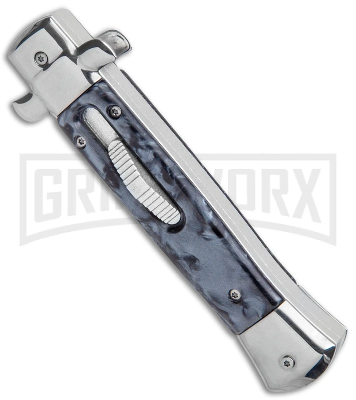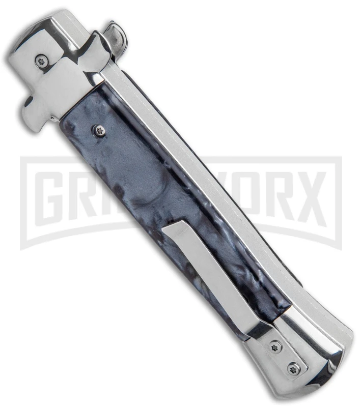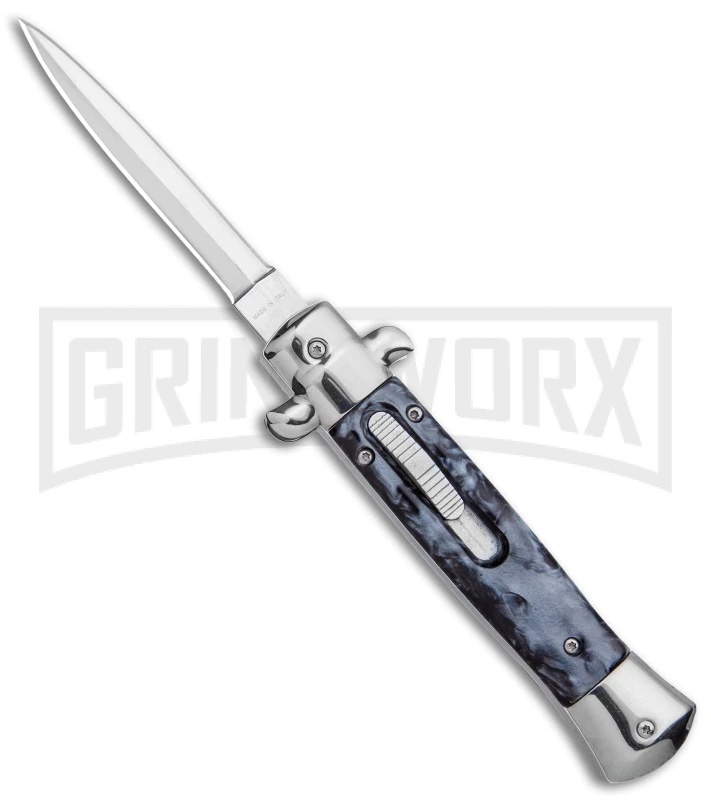 Get the best of both worlds with the Mago 9″ Italian Stiletto OTF automatic. The Mago brilliantly combines the classic style of an Italian stiletto and the tactical speed of an OTF. A front loaded thumb slide automatic action sends the blade shooting up in a speedy fashion. A front loaded thumb slide. Add a unique design to your collection with the Mago 9″ Italian Stiletto OTF Auto.
