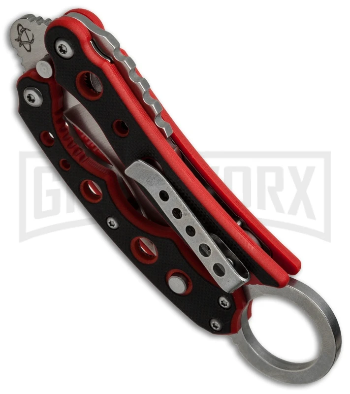 Mantis MK-4 Vuja De Black/Red G-10 Balisong Karambit Butterfly – Satin Plain