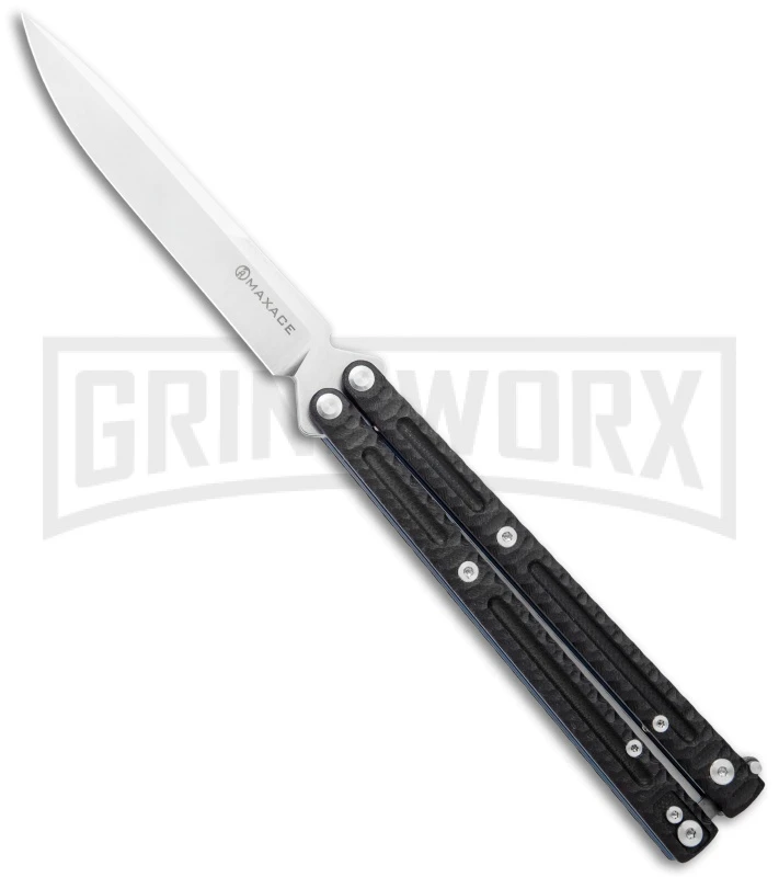 The Maxace MidnightCat Obsidian-S is a premium, lightweight butterfly knife built with G-10 handles and a tough and 14C28N blade. The pivots slide smooth and easy with the washers and bushings. The titanium liners permit solid control. Each knife includes a microfiber cloth and a zipper pouch for carrying and storing.