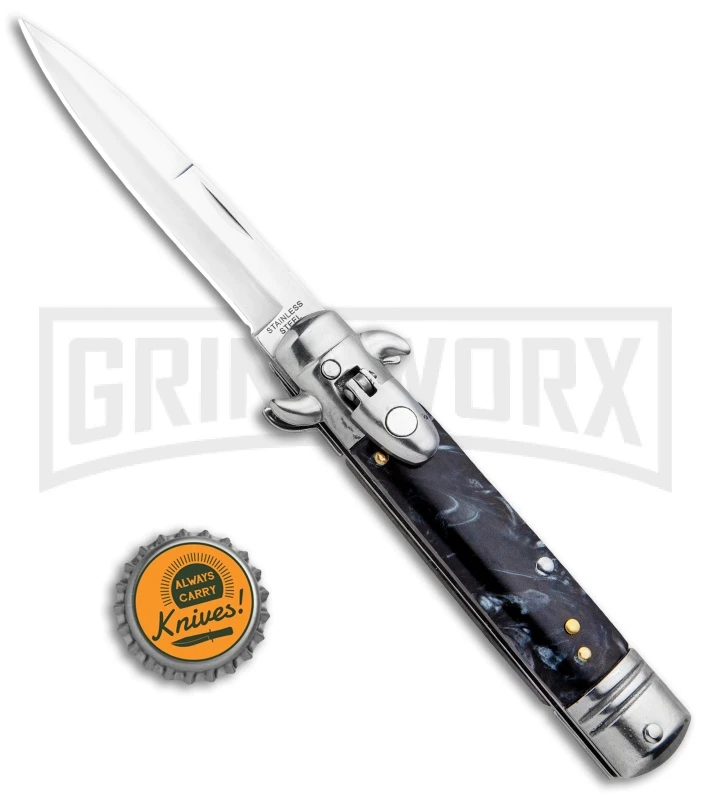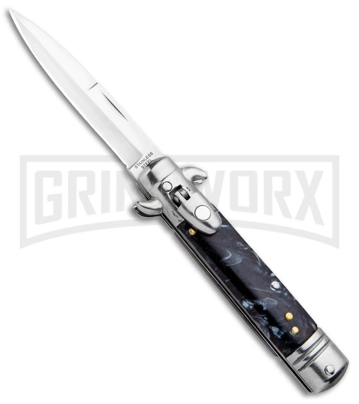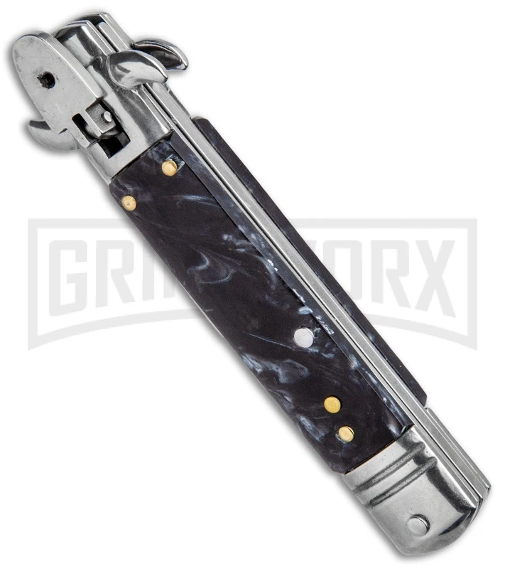 Milano 7.5″ Lever Lock Automatic Knife Black Marble – Bayonet Satin