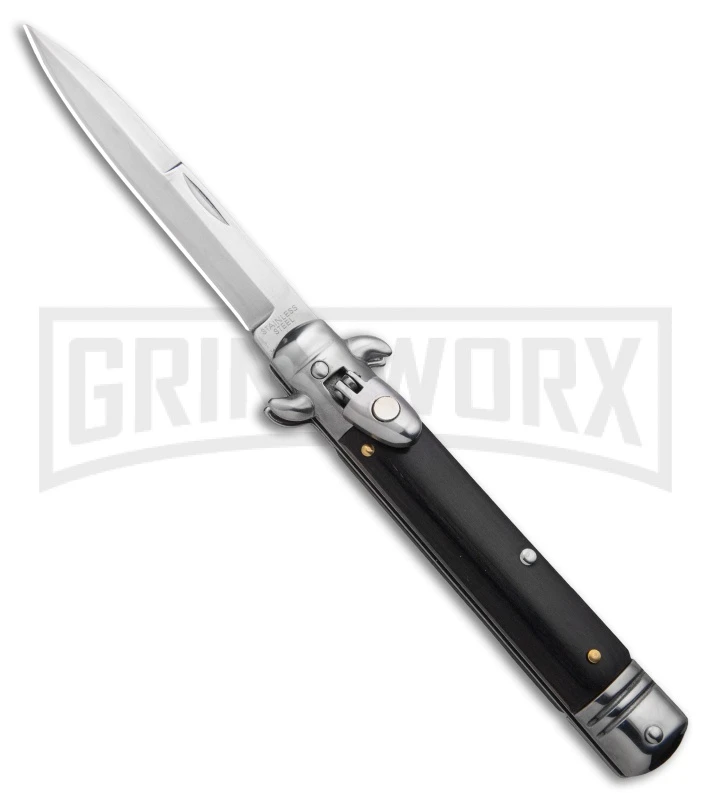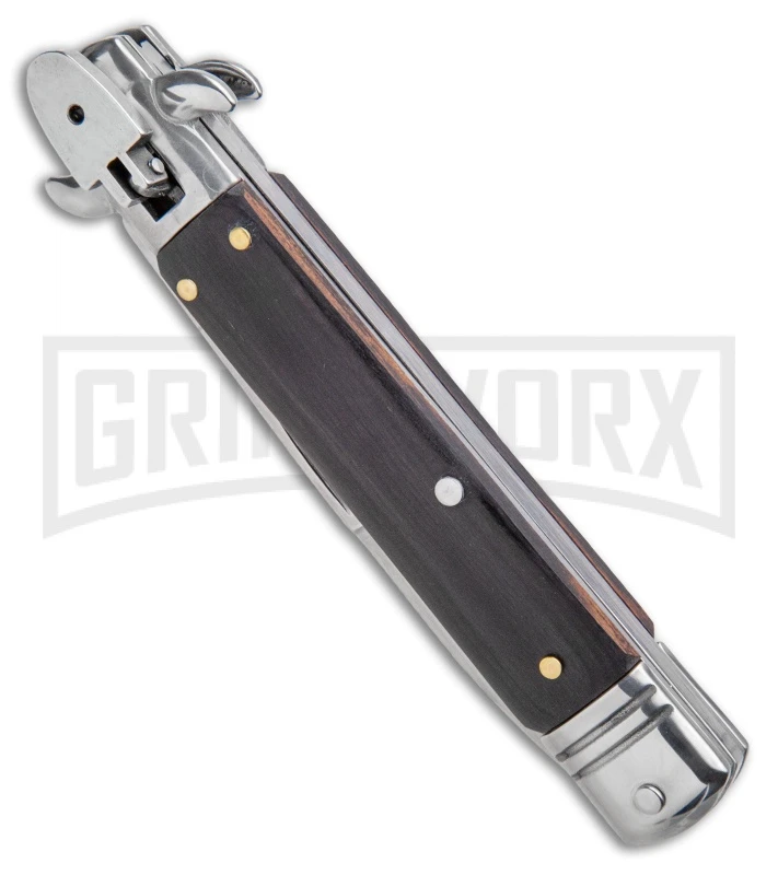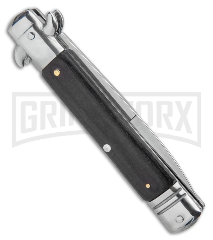Milano 8.5″ Lever Lock Automatic Knife Black Wood – Bayonet Satin