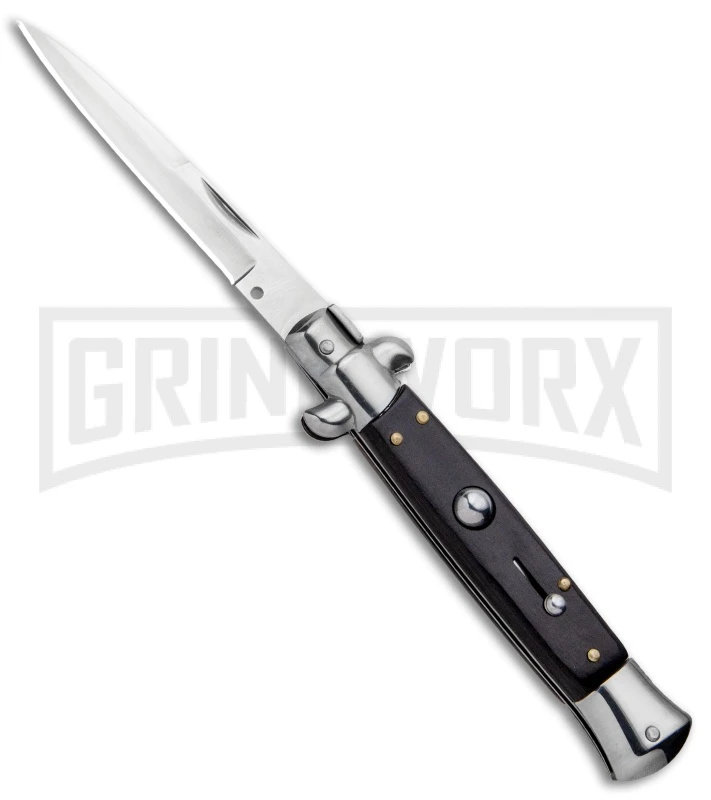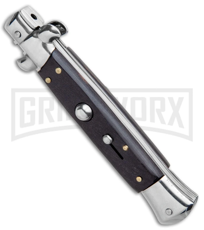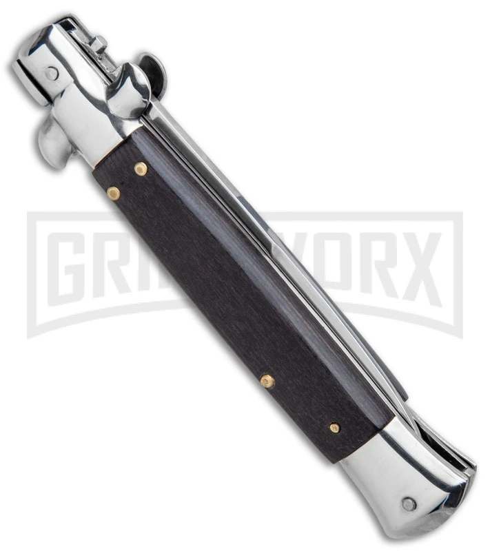 The Milano Stiletto offers a classic automatic knife design that’s easily affordable for anyone interested in Italian style knives. It’s built with a stainless steel bayonet blade and a wood handle with stainless steel bolsters. The push button release has fast action and a solid lock up. To unlock the blade, simply push down on the swivel bolster. Item is equipped with a sliding safety to protect against accidental release of the blade. The Milano Stiletto is a great way to get your collection started.