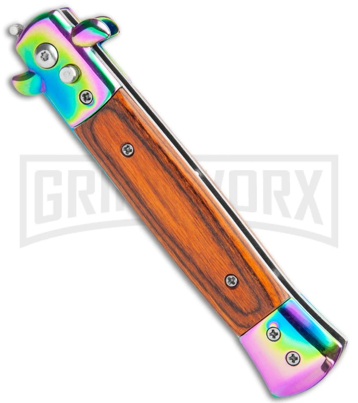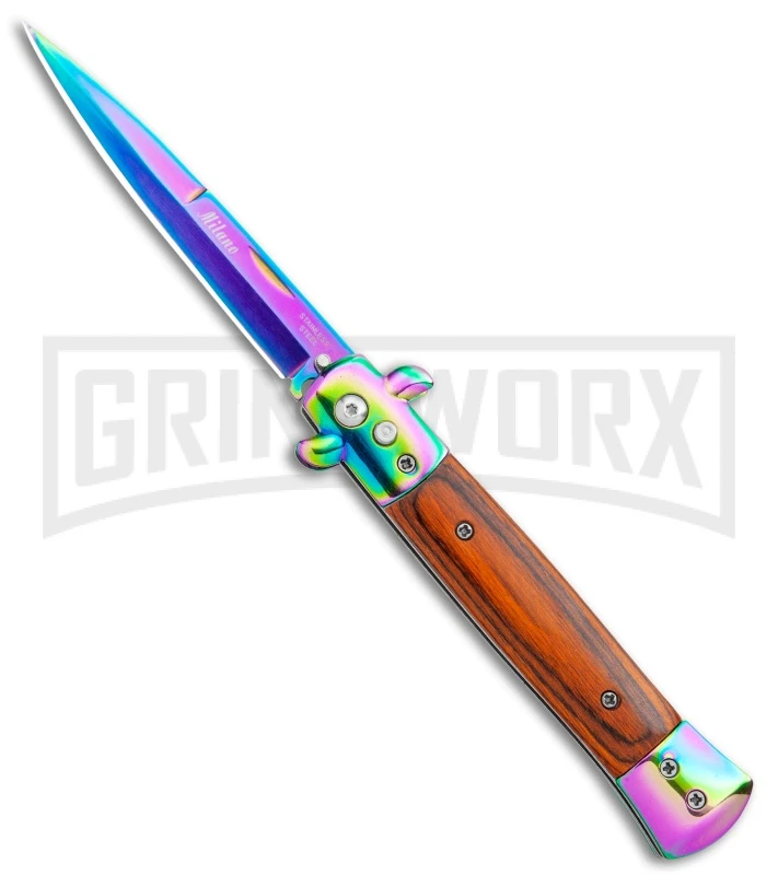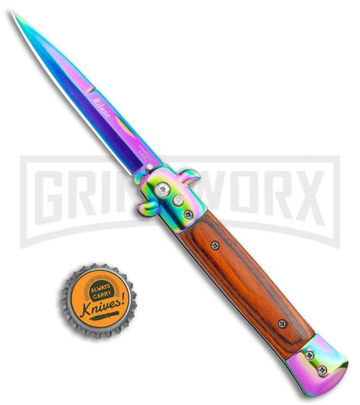 Milano 9″ Italian Stiletto Rosewood Automatic Knife – Bayonet Spectrum