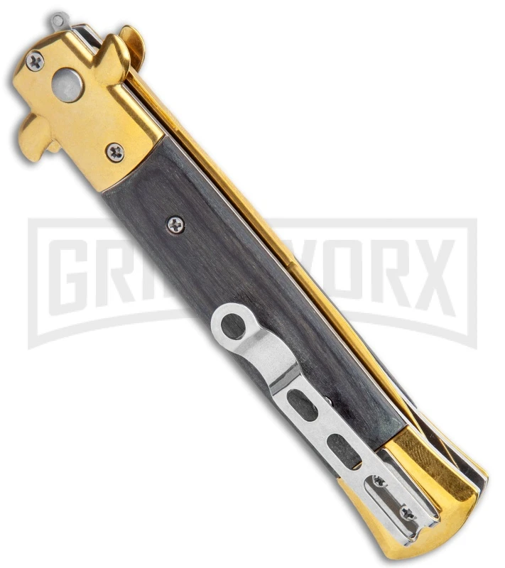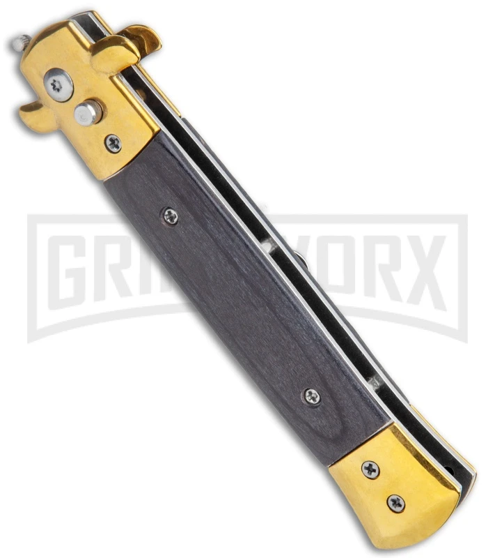 Milano 9″ Italian Stiletto Wood Black Automatic Knife – Bayonet Gold