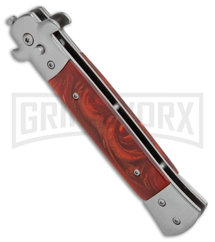 This Milano Stiletto comes in the classic Italian style. It has a razor sharp bayonet blade made from 440 stainless steel. The handle features brown swirl handle scales and a tip-up carry pocket clip. Add this great looking automatic to your collection today!