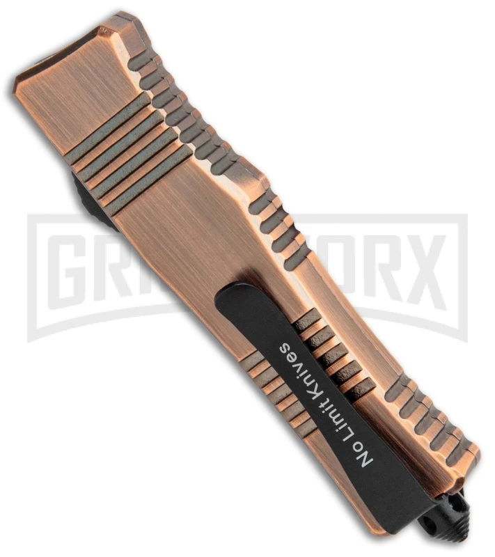 This Cali-Legal model from No Limit Knives features a bronze handle and black dagger blade.
