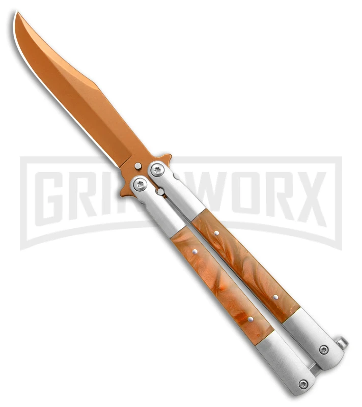 Regal Flipper Orange Swirl Balisong Butterfly Knife – Green Plain