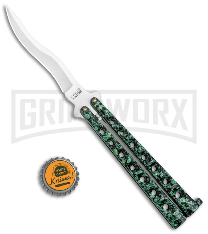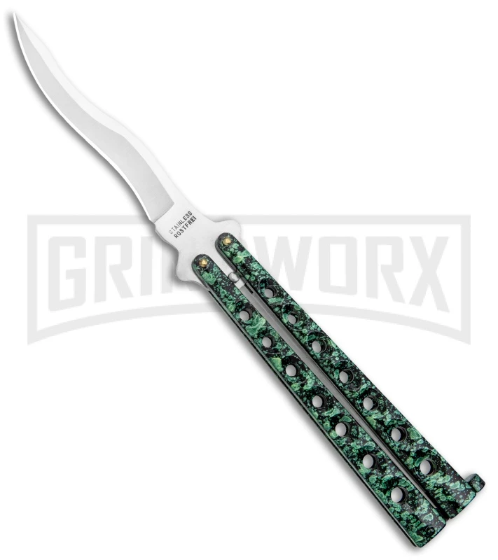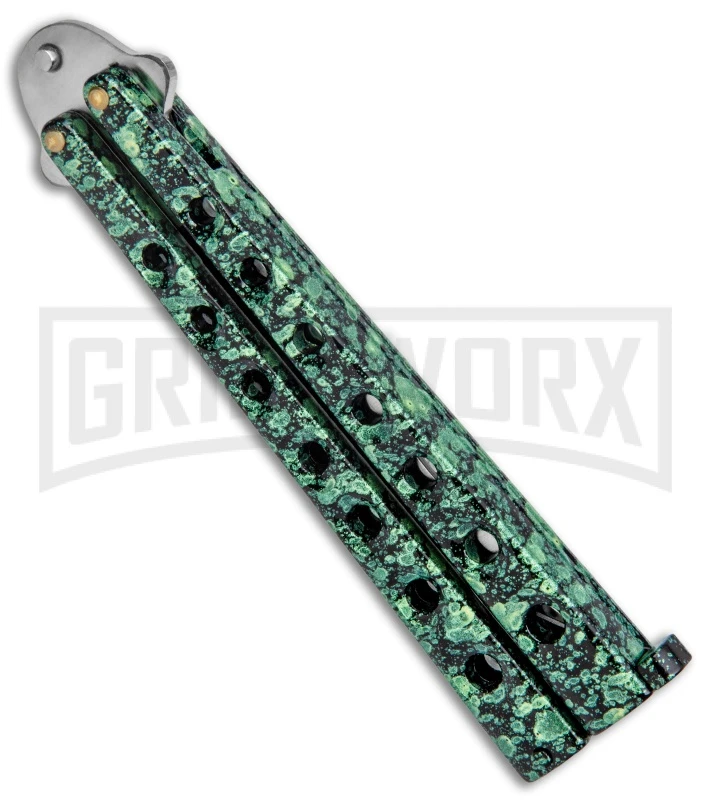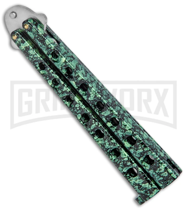 Scoundrel Speckled Green Balisong Butterfly Knife Kriss – Satin Plain