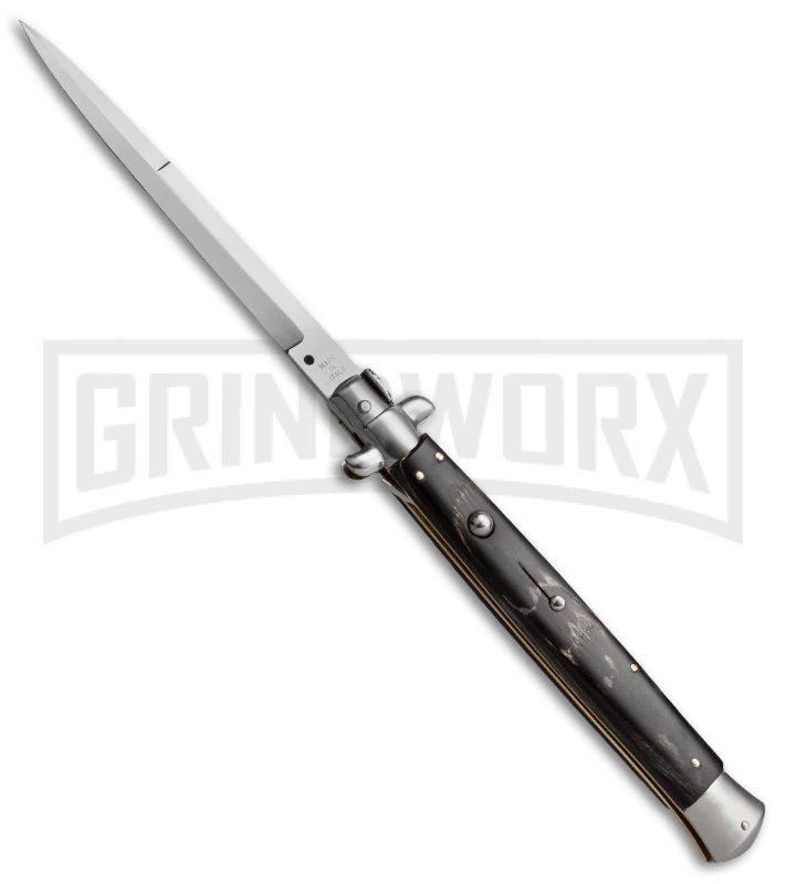 SKM 13″ Italian Stiletto Dark Horn Automatic Knife – Bayonet