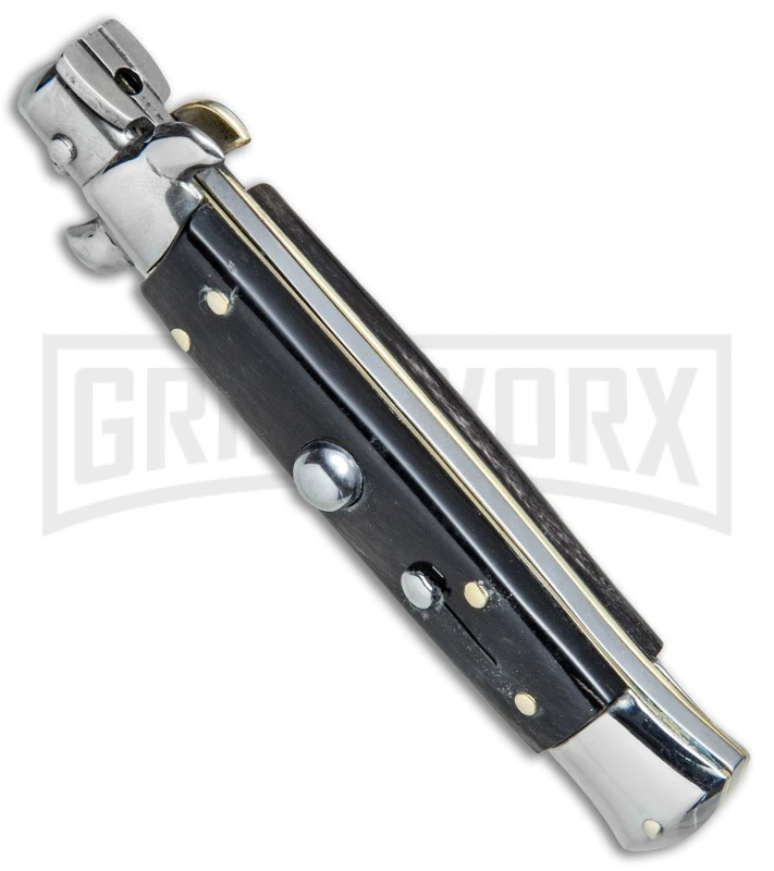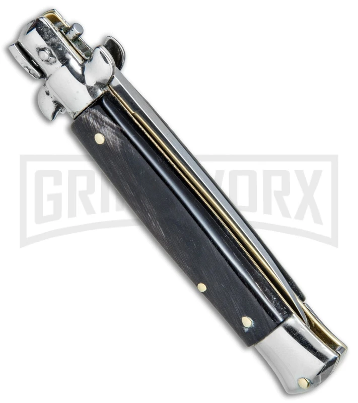 SKM 8″ Italian Stiletto Dark Horn Automatic Knife – Satin Flat