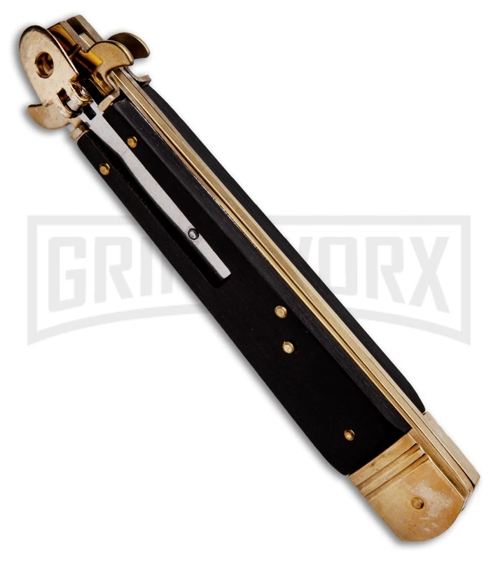 SKM 9.75″ Slimline Black Wood Leverlock Automatic Knife – Satin