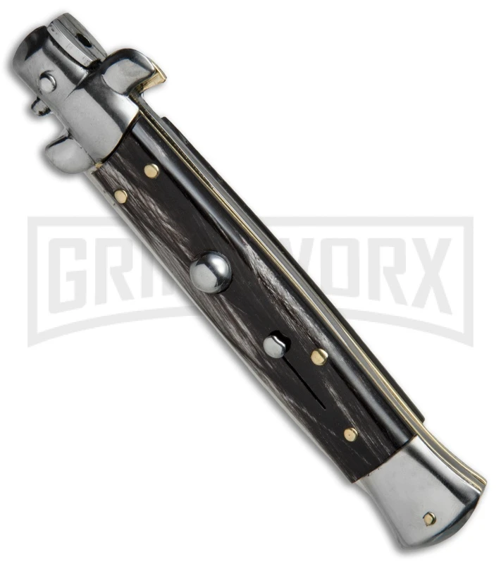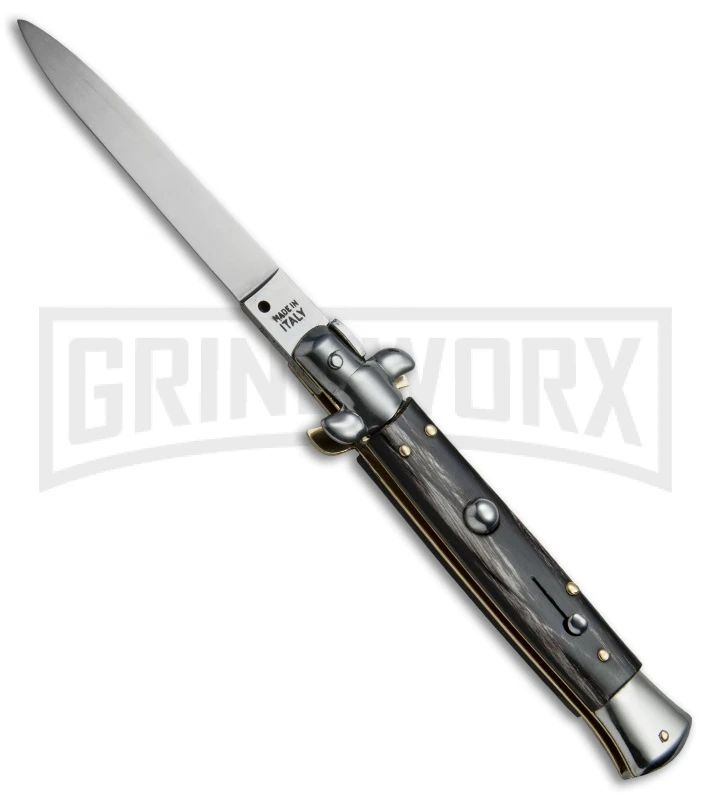 SKM 9″ Italian Stiletto Dark Horn Automatic Knife – Flat