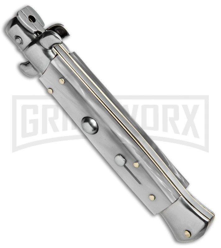 SKM/AB 9″ White Acrylic Automatic Stiletto Knife – Satin Kris