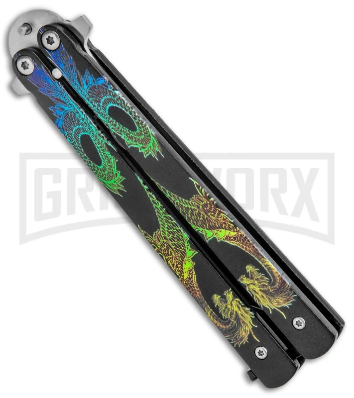 Super Knife Black Balisong Butterfly Knife Dragon – Tanto Satin