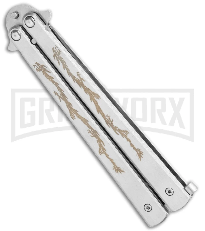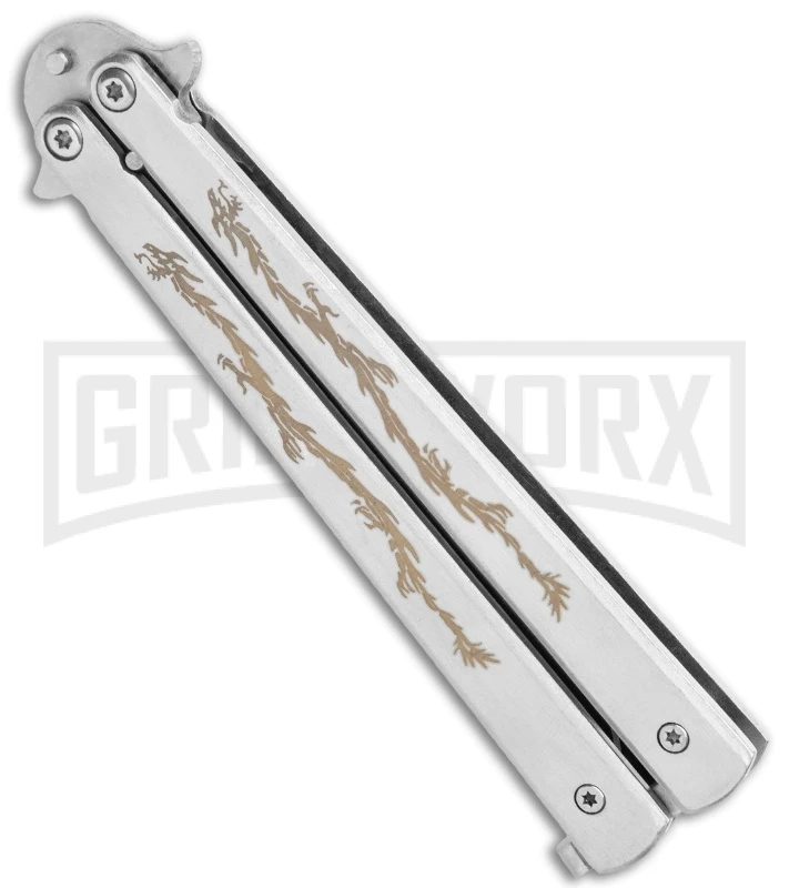Super Knife Silver Balisong Butterfly Knife Dragon – Satin Serr