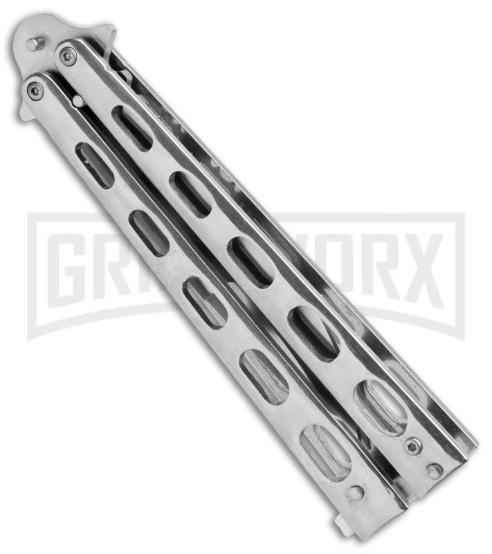 Super Knife Sleek Slinger Silver Balisong Butterfly Knife – Satin Serr